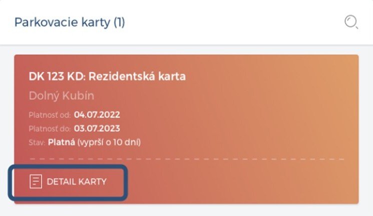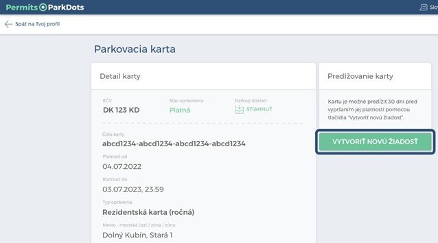 1. Otvorte si webovú aplikáciu ParkDots Permits a prihláste sa použitím svojho prihlasovacieho mena (email) a hesla. Po prihlásení do systému si otvorte detail parkovacej karty.